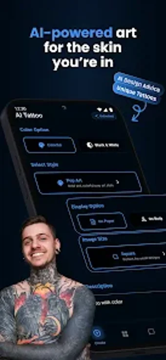 Tattooly - AI Tattoo Maker is een gratis Android-app die gebruikers in staat stelt unieke tattoo-ontwerpen te creëren en deze op hun lichaam te visualiseren. Met behulp van geavanceerde AI-technologie kunnen gebruikers hun persoonlijke stijl en voorkeuren invoeren om op maat gemaakte ontwerpen te genereren. De app biedt een breed scala aan stijlen, waaronder realistisch, minimalistisch, en Japans, en stelt gebruikers in staat om teksttattoos aan te passen met verschillende lettertypes en stijlen.